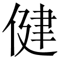 [4]勇猛。如:健翼(猛禽);健侠(刚勇侠义);健鹘(勇猛矫健的鹘)