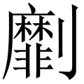 [2]擦;磨。如:劘牙(磨牙);劘灭(磨灭);劘拂(摩拂)