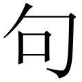 (形声。从口。正当读今言钩,俗作勾。本义:弯曲)