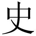 (会意。甲骨文字形,上面是放简策的容器,下面是手。合起来表示掌管文书记录。本义:史官)