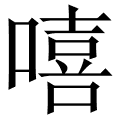 (形声。从口,喜声。本义:叹词。表示赞叹、悲叹或惊惧)