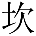 [1]低陷不平的地方,坑穴:坎井之蛙(喻知识浅陋的人)。坎坷。