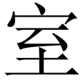 室,实也。──《说文》。段注:“古者前堂后室。释名曰:“室,实也,人物实满其中也。”