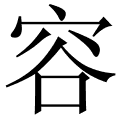 [4]相貌,仪表,景象,状态:容止。容颜。容光。容貌。仪容。军容。市容。阵容。姿容。