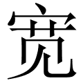 (形声。从宀(mián),表示与房屋有关,苋(kuān)声。本义:房屋宽敞)