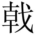 (会意。从戈,从榦(gàn)省。本义:古代兵器。青铜制,将矛、戈合成一体,既能直刺,又能横击)