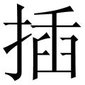 [2]加入,参与:插班。插话。插曲。插图。插页。插叙。安插。