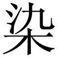 (形声。从水,杂声。一说从木、从水、从九。会意。古染料多来源于植物,故从木;染料须加工成液体,故从水;染须反复进行,故从九。本义:使布帛等物着色)