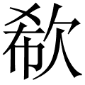 [1](形声。从欠,希声。“欠”与出气有关。本义:抽噎;哽咽)同本义