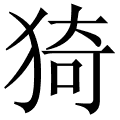 [1](形声。从犬,奇声。本义:阉割过的狗)同本义