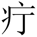 [1]病名,即疔疮。一般发于颜面及手足等部位,根深形小,其状如钉,故名。如:红丝疔;蛇头疔