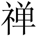 [1](形声。从示,单声。从“示”,表示与鬼神有关。(shàn)本义:古代帝王辟基祭地)佛教语。梵语“禅那”之略。原指静坐默念。如:禅法(佛法);禅坐(指僧侣端坐静修)