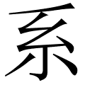 (“系”、“係”、“繫”三字的意义界限不清楚,故往往通用,且经传多以繫为之,只有世系的意义,只用“系”字。会意。甲骨文字形上面是“爪”,下面是“丝”。丝悬于掌中而下垂。本义:悬,挂)