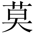 昆莫 莫者 囊莫 遮莫 莫若 错莫 吉莫靴 侯莫陈 莫干山 功莫大焉 莫逆之契 神鬼莫测 含冤莫白 诫莫若豫 谋莫难于周密 莫德格玛(1941-) 莫斯科不相信眼泪 莫见乎隐,莫显乎微 若要不知,除非莫为 宁为太平犬,莫作离乱人
