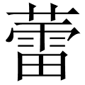 [1](形声。从艸,雷声。本义:含苞未放的花朵)同本义。如:花蕾;蓓蕾