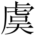 (形声。从虍(hū),吴声。虍,虎头。本义:神话传说中的兽名。即“驺虞”)