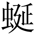 [1](形声。从虫,延声。本义:蜒蚰,虫名)同本义,又名“蛞蝓”、“鼻涕虫”。蛞蝓科。形似去壳蜗牛,有两对触角,身体分泌粘液,爬行后常留下银白色的条痕。是农作物的害虫。如:蚰蜒(节肢动物,像蜈蚣而略小)