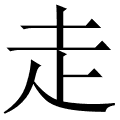 (会意。金文字形象摆动两臂跑步的人形,下部象人脚。合起来表示人在跑。本义:跑)