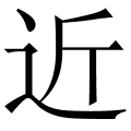 (形声。从辵(chuò),表示与行走有关,斤声。本义:走近,接近)