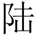 (会意。从阜(fù),表示与地形地势的高低上下有关,从坴(lù),土块很大。“坴”亦兼表字音。本义:陆地,高而平的地方)