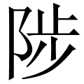 (会意。甲骨文字形。从阜,从步。左边是山坡,右边是两只向上的脚,表示由低处向高处走。本义:由低处向高处走;升;登高)