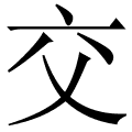 (象形。小篆字形,象人两腿交叉形。本义:交叉)