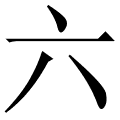 又如:初六(由下而上的第一个阴爻);上六(最上一个即第六个阴爻);六爻(爻,是构成《易》卦的基本符号。每三爻会成一卦。两卦即是六爻);六出(雪花。因呈六角形)