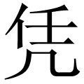 又如:凭几(凭靠几案);凭肩(以手靠在别人肩上);凭脉(搭脉)