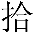 [1]捡,从地上拿起:拾草。拾粪。拾零(捡取某方面的零碎材料,常用于文章标题)。拾取。俯拾皆是。拾人牙慧。