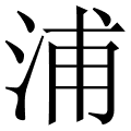 又如:浦淑(水边的美女);浦帆(水滨的帆船);浦溆(水边);浦鸥(水边的鸥鸟);浦滩(滩岸)