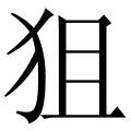 [3]狡猾。如:狙猾(像猴子一样的狡猾);狙谲(狡诈);狙绘(狡猾奸诈);狙狂(狡黠狂妄)