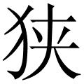 (形声。从犬,夹声。本义:窄,宽度、广度小)