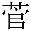 又如:菅茅(茅草的一种);菅菲(菅履,草鞋);菅筲(用菅草编的盛饭器);菅荐(草席)
