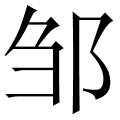 又如:邹马(汉邹阳和司马相如并称);邹子(指战国齐人邹衍)