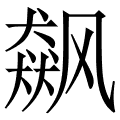 又如:狂飙(急骤的暴风);清飙;飙忽(迅急的风);飙驰(狂风大作)