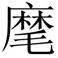 (形声。从毛,麻声。本义:古代供指挥用的旌旗)